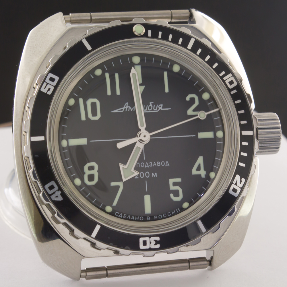 Стрелки Амфибия 2.0 - по размерам и габаритам - точно как с завода идут на обычных Амфибиях, только наши имеют увеличенное пространство для люма (часовая имеет люм в "прямоугольник объединенный с треугольником", минутная - тоже увеличенное пространство под люм - как когда то на первых Амфибия и Командирских делал завод восток в далекие 1960-1970е) и изготовлены стрелки из сплава металла выше маркой, поэтому стрелки можно снимать - ставить по несколько раз, не царапаются, краска и финишная обработка высшего качества и конечно стрелки имеют наш отличный люм. Стрелки произведены в Южной Корее на той же линии где делают стрелки для японских часов Citizen.
