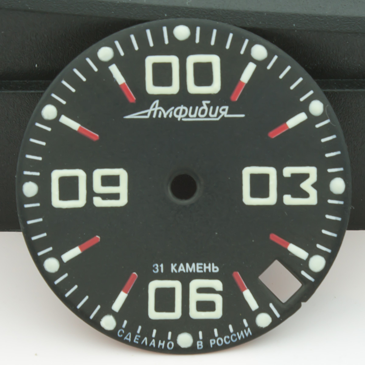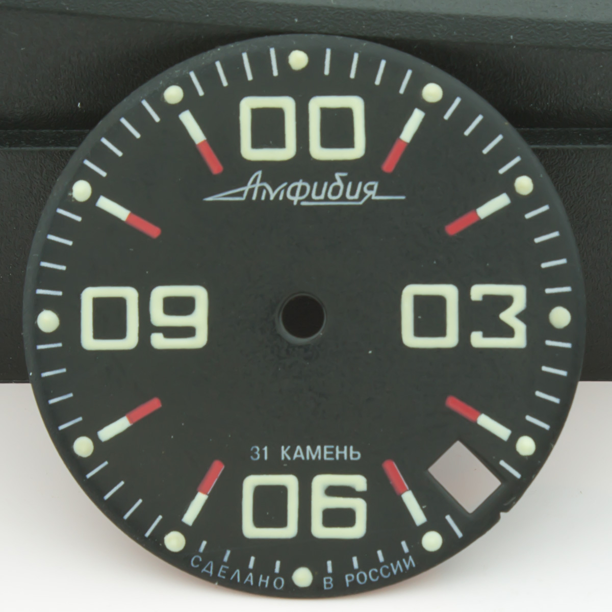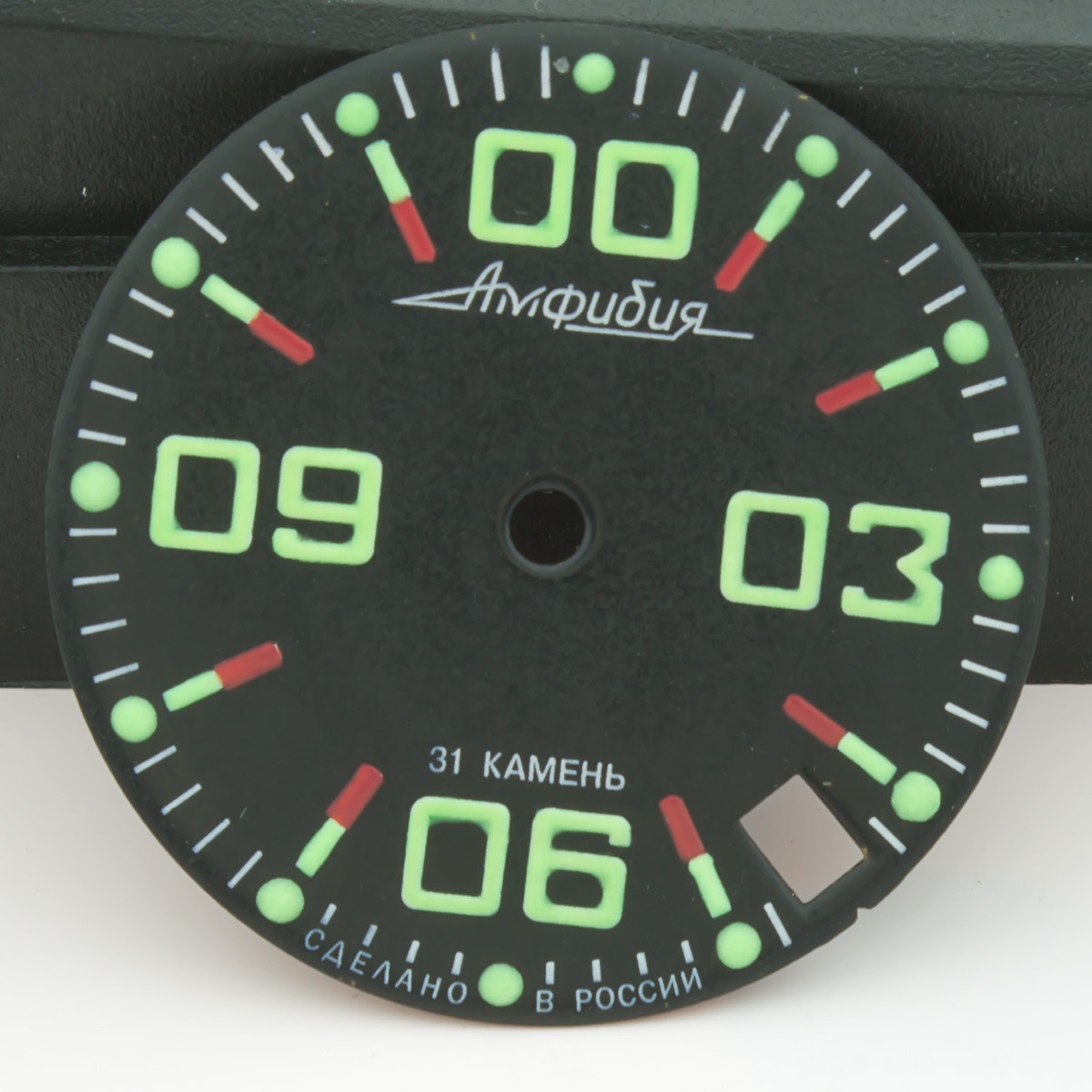 Данная модель циферблата для часов Восток Амфибия и Командирские была доработана нашей командой в части нанесения люма на все метки и символы циферблата. Люма удаётся наносить РУЧНЫМ СПОСОБОМ больше, чем МАШИНОПЕЧАТЬЮ - качественного настоящего люма Superluminova - поэтому циферблат имеет яркое и длительное свечение в темноте. Плюс ручного нанесения люма также в том, что символы получаются не плоскими как при обычной печати, а имеют небольшой 3D эффект - безусловно это придает часам более детализированный и богатый вид. Циферблат изготовлен часовым заводом Восток, доработан нашей командой по люму. Диаметр циферблата 28.5мм - подходит ко всем моделям Амфибия и Командирские в современных и ретро корпусах.