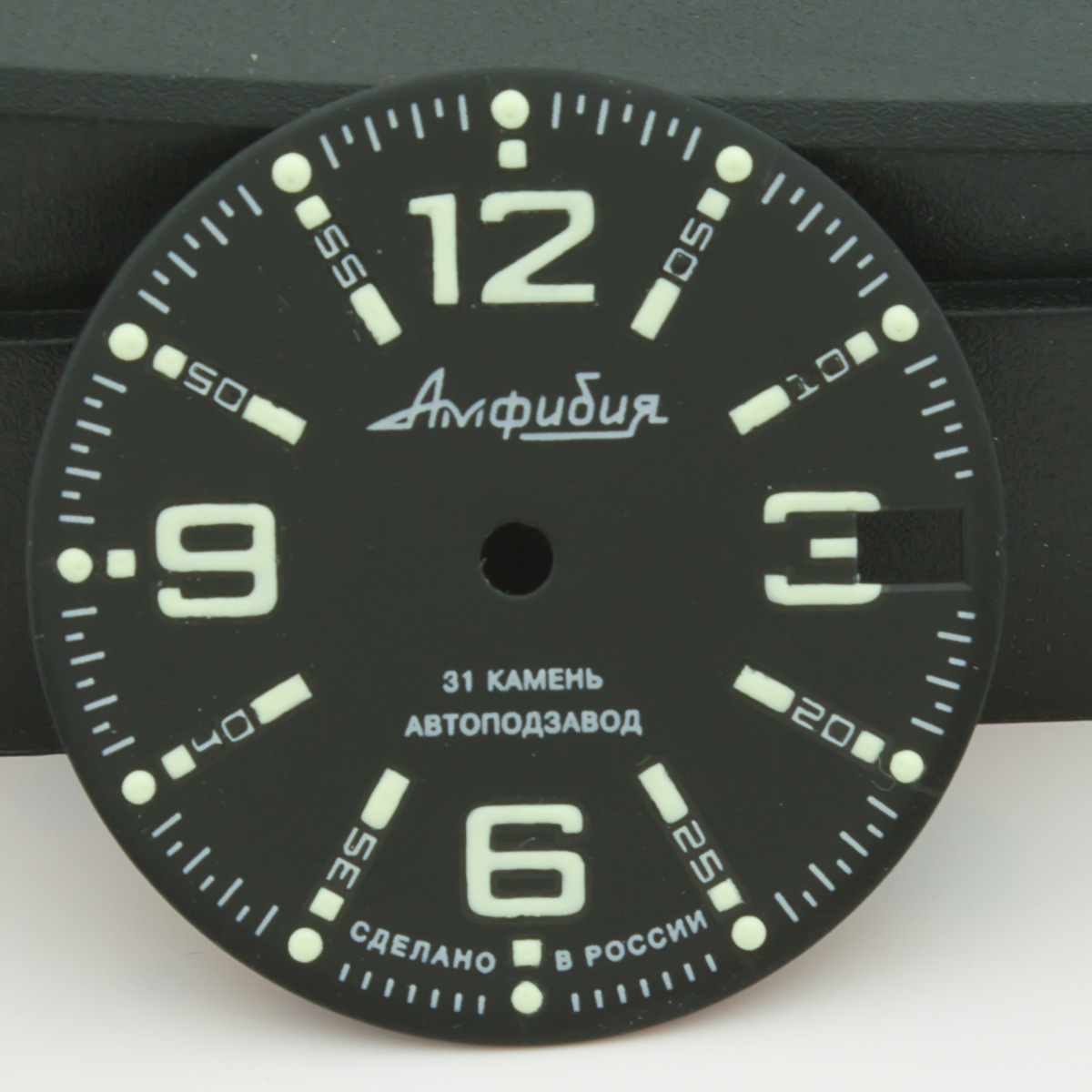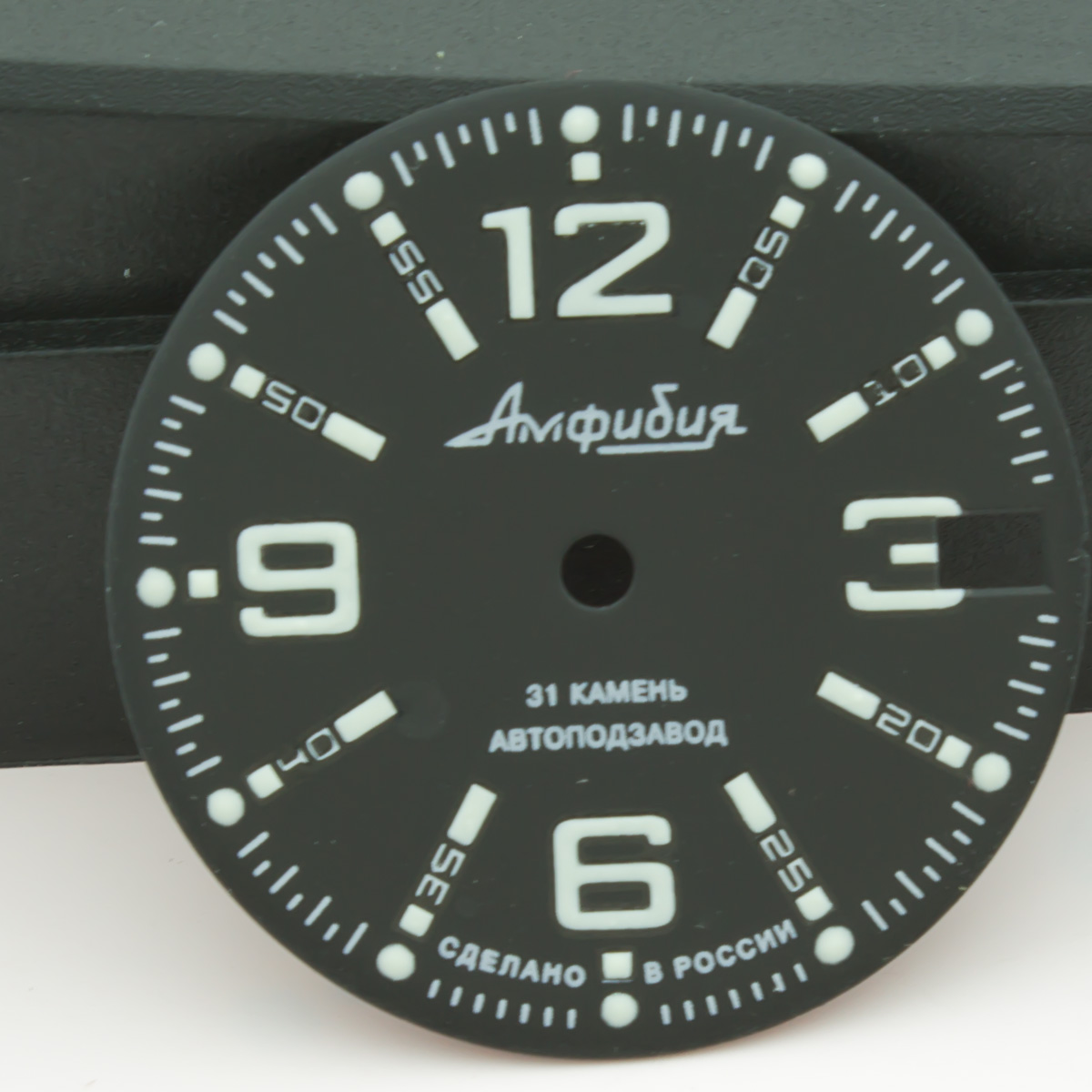 Данная модель циферблата для часов Восток Амфибия и Командирские была доработана нашей командой в части нанесения люма на все метки и символы циферблата. Люма удаётся наносить РУЧНЫМ СПОСОБОМ больше, чем МАШИНОПЕЧАТЬЮ - качественного настоящего люма Superluminova - поэтому циферблат имеет яркое и длительное свечение в темноте. Плюс ручного нанесения люма также в том, что символы получаются не плоскими как при обычной печати, а имеют небольшой 3D эффект - безусловно это придает часам более детализированный и богатый вид. Циферблат изготовлен часовым заводом Восток, доработан нашей командой по люму. Диаметр циферблата 28.5мм - подходит ко всем моделям Амфибия и Командирские в современных и ретро корпусах.