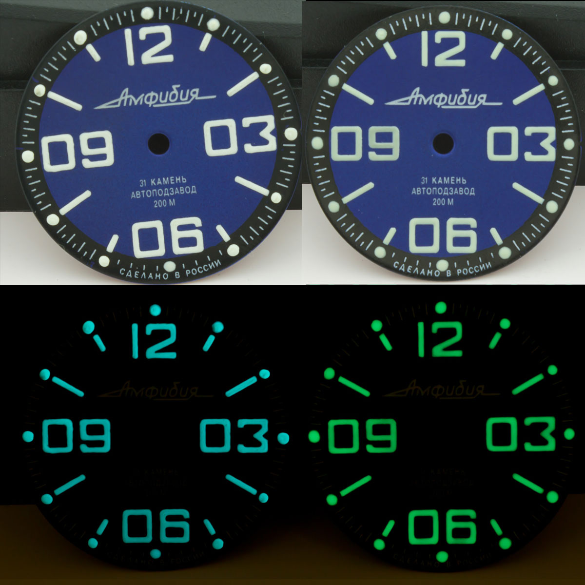 • Ниже можете видеть примеры работ, на видео - к сожалению камера с трудом показывает как на самом деле выглядит свечение в темноте, но разница настоящего швейцарского люма Superluminova с заводским люмом от Восток - там очевидно оценить можно (на камере заводской люм вообще светит слабо слабо - это связано с чувствительностью камеры конечно). Наш люм светится примерно также как на японских Сейко, правда зависит от дизайна символов. На циферблатах нашей разработки - свечение порой превосходит японцев, так как мы наносим люм вручную, не машинопечатью. Переходите и подписывайтесь также в наши соцсети, присылайте туда фото проектов сделанных с нашими деталями - опубликуем и конечно будем дружить!