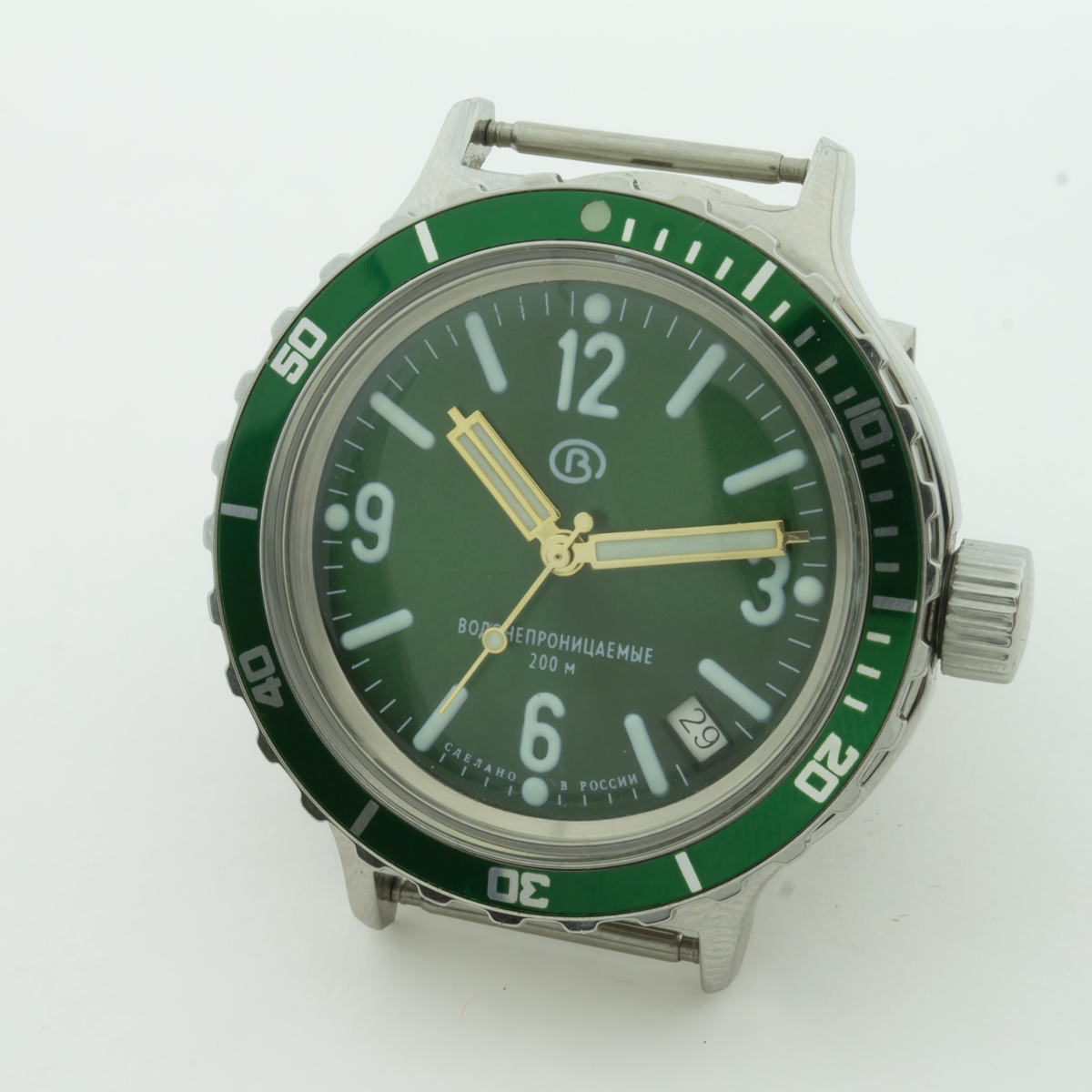 Данный по габаритам близок к тому что идет на Амфибия классика, он также используется во многих дайверских часах разных брендов. Изготовлены стрелки из сплава металла выше маркой, поэтому стрелки можно снимать - ставить по несколько раз, не царапаются, краска и финишная обработка высшего качества и конечно стрелки имеют наш отличный люм. Стрелки произведены в Южной Корее на той же линии где делают стрелки для японских часов Citizen.